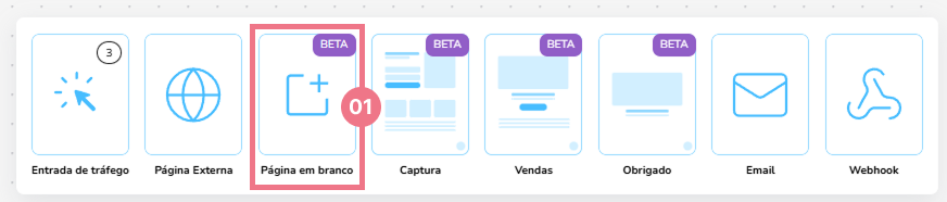 2. Opções da página → Uma vez adicionada a página contará com algumas opções de configuração dentro do criador de funil, para visualizar as opções passe o mouse em cima da página em questão, abaixo uma lista com as opções da página: