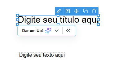 Para criar um espaço de texto, você dispõe de duas funções, representadas pelos símbolos: um “T” para títulos e “Aa” para parágrafos. Esse recurso permite que você adicione texto ao seu template, conforme ilustrado na imagem abaixo: