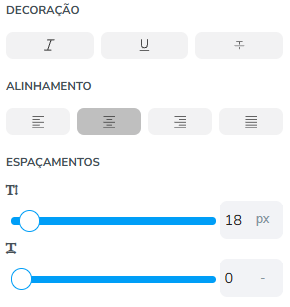 - Decoração do botão: Você pode colocar o texto em itálico, sublinhado ou riscado.