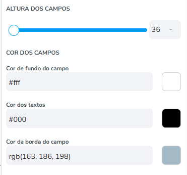 - Cor dos textos: Escolha a cor do texto dentro do campo.