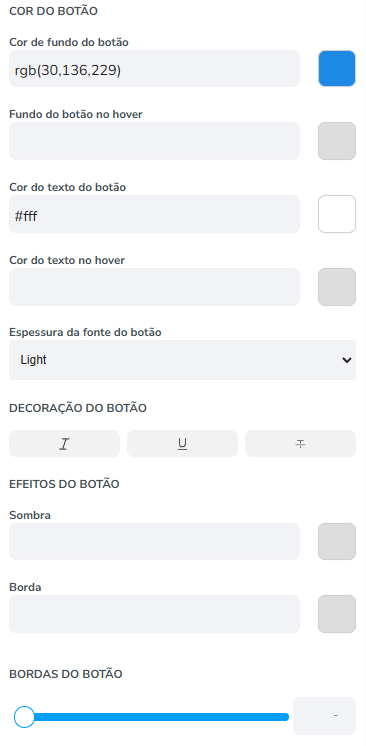 - Fundo do botão no hover: Escolha a cor de fundo quando o botão estiver com o mouse sobre ele.