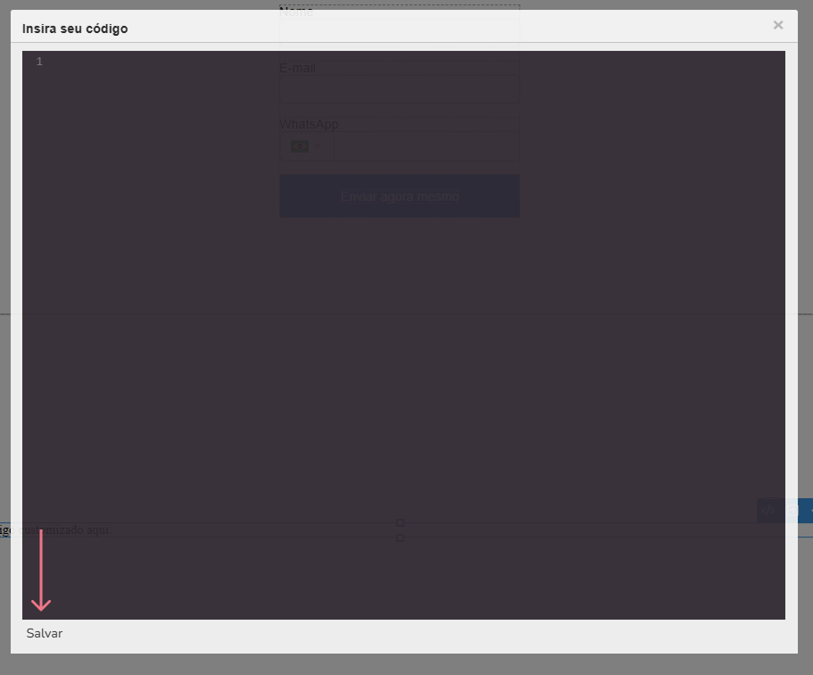 - Ao adicionar o componente, uma janela será aberta para que você insira o seu código HTML. Basta copiar o código e colá-lo nesse espaço.
